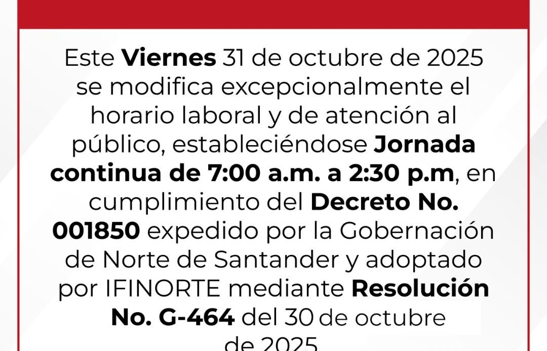 INFORMACIÓN IMPORTANTE| Modificación de horario laboral y de atención al público..