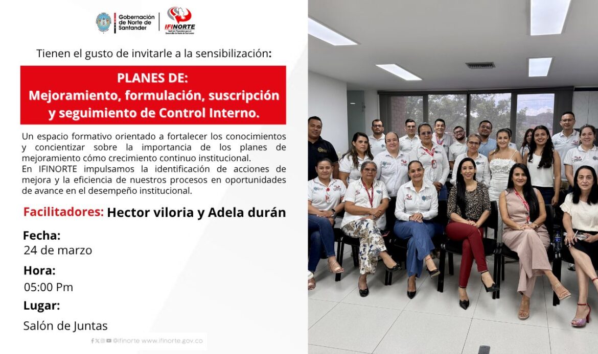Mejoramiento, Formulación, Suscripción y Seguimiento de Control Interno – Un espacio formativo orientado a fortalecer los conocimientos y concientizar sobre la importancia de los planes de mejoramiento cómo crecimiento continuo institucional. En IFINORTE impulsamos la identificación de acciones de mejora y la eficiencia de nuestros procesos en oportunidades de avance en el desempeño Institucional.