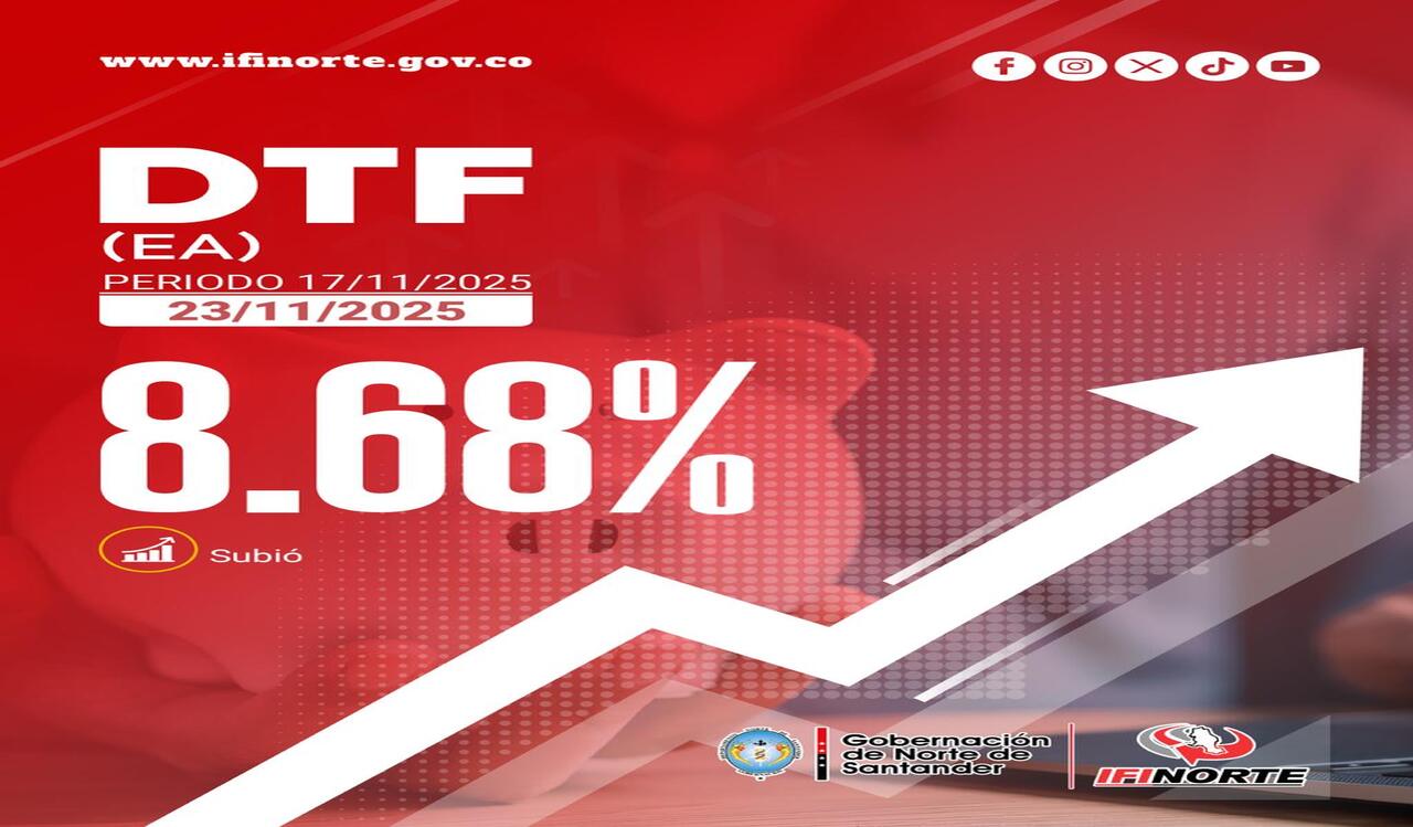 La tasa DTF vigente para el periodo del 17 de noviembre al 23 de noviembre es del 8,68% (subió)