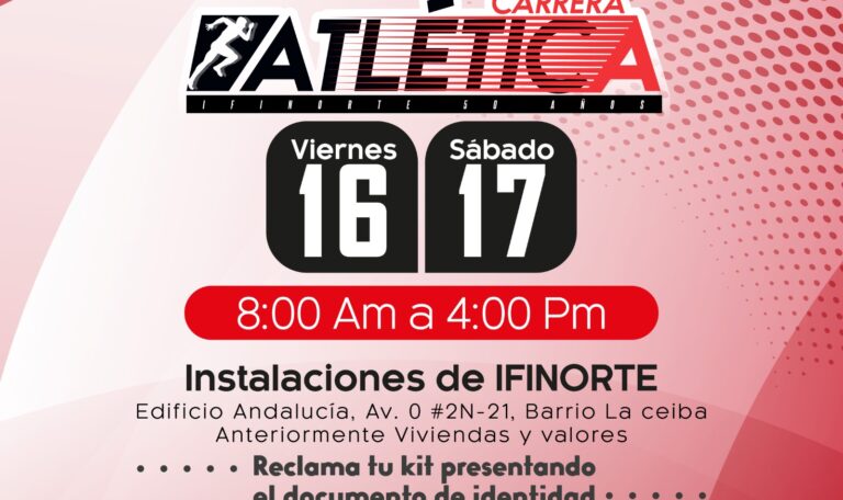 La entrega de los kits para la Carrera Atlética IFINORTE 50 AÑOS se realizará este viernes 16 y sábado 17 de agosto.