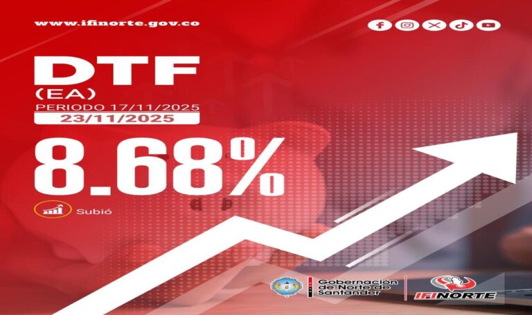 La tasa DTF vigente para el periodo del 17 de noviembre al 23 de noviembre es del 8,68% (subió)
